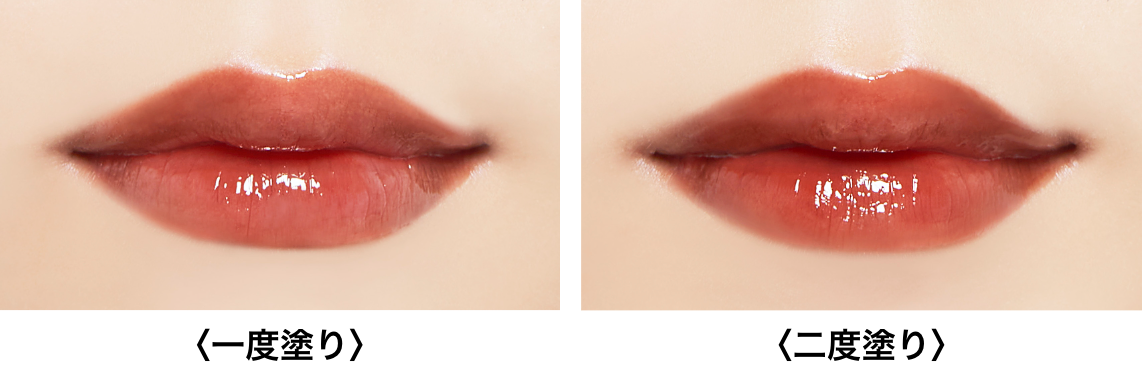 それぞれに花や果実の名前がついた、うるおいたっぷりのリキッドルージュ。つけたての色が続く、ティント処方です。